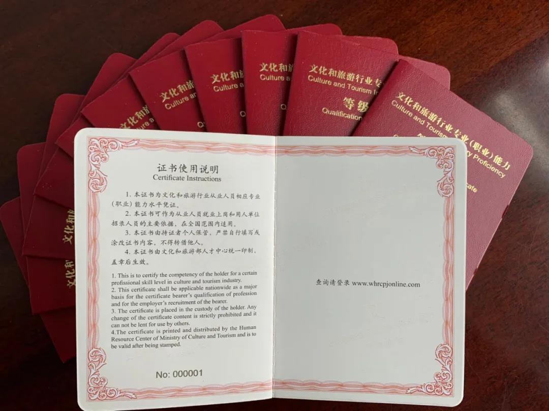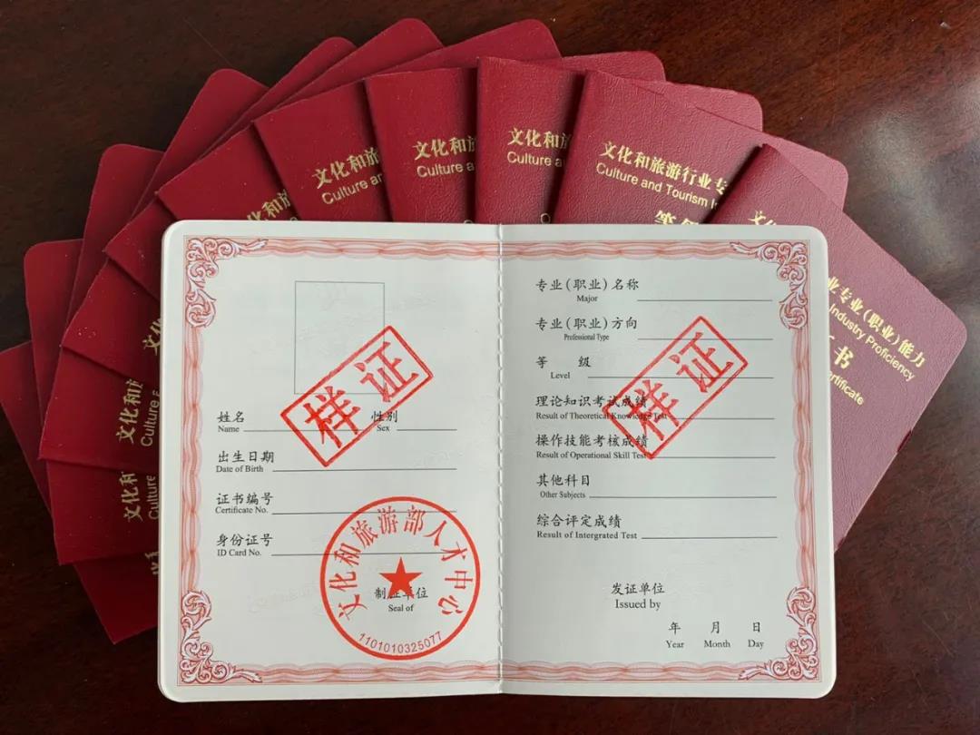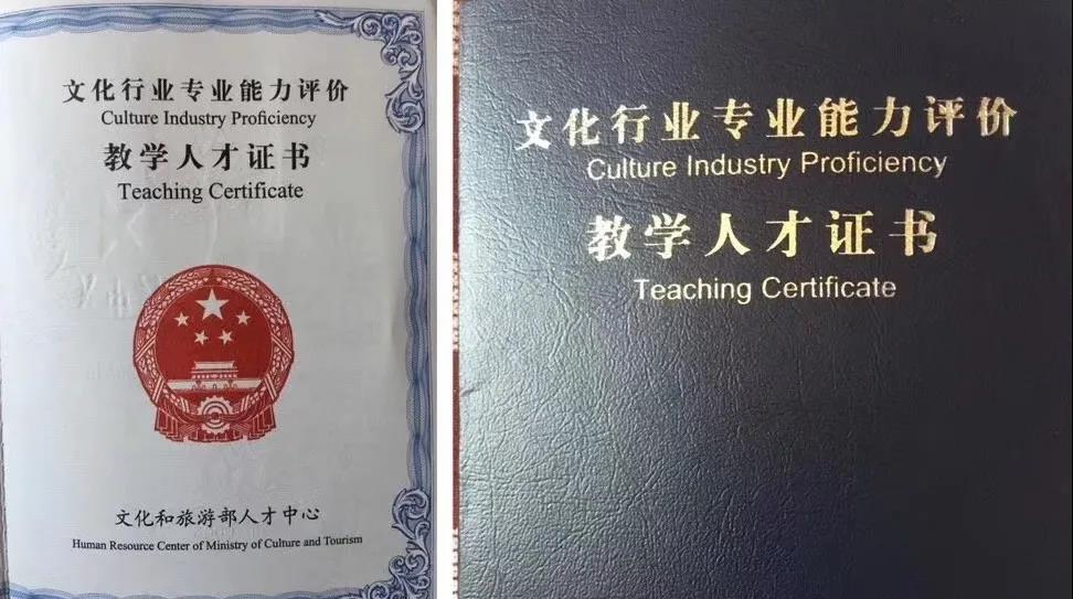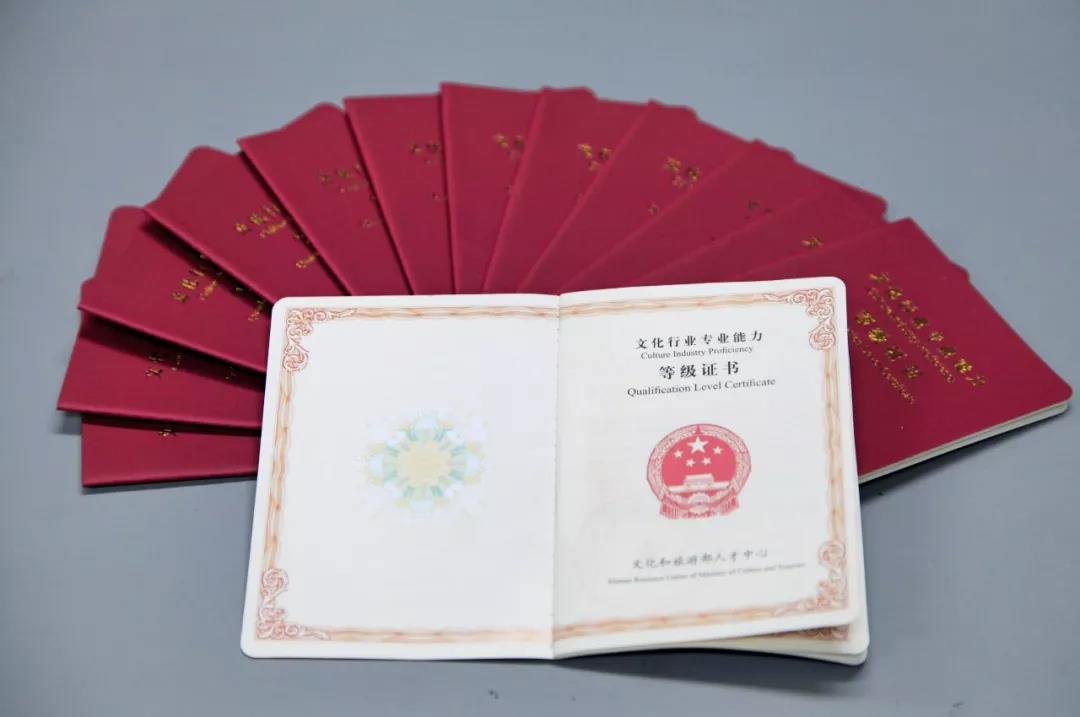 考试合格者颁发文化和旅游部人才中心印制的《文化行业专业能力等级证书》以及《教学人才证书》。